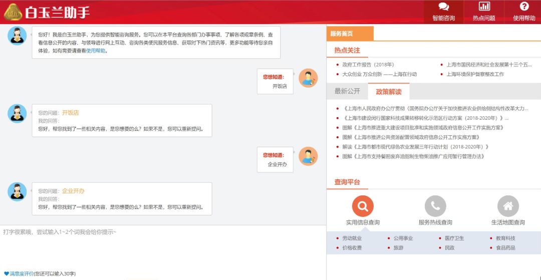 附:15个政府网站智能问答机器人地址与用户界面