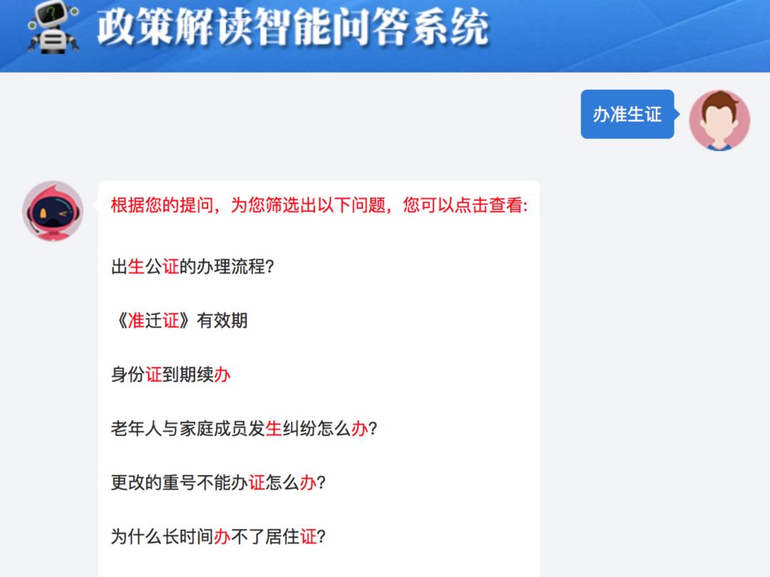 个别智能问答机器人在信息理解、模糊匹配、推送规则等方面均较为成熟,但是还是无法满足用户需求,部分原因存在于对信息内容和用户需求的优先级无法准确识别,比如在湖南省政府门户网站的智能问答机器人输入“生孩子”,获得系统反馈的都是资讯信息,而用户实际需要的是一份办事指南。